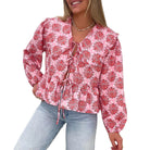 تقدم هذه البلوزة شكلًا أنثويًا ونمطًا زهرًا ساحرًا. يضيف تصميمها ذو الأكمام الطويلة وقلادتها الفريدة لمسة من الأناقة. مثالية للمناسبات غير الرسمية، تجمع بين الأسلوب والراحة.
