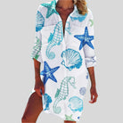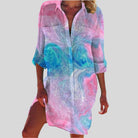 Dieses knöpfbare Sommerkleid mit langen Ärmeln bietet einen fließenden und bequemen Schnitt. Sein vielseitiges Design passt zu verschiedenen Anlässen. Erhältlich in mehreren Farben und Größen, um für alle zu passen.
