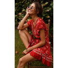 Αυτό το κόκκινο φόρεμα με κρυφό ντεκολτέ αναδεικνύει τη σιλουέτα χάρη στο ντεκολτέ σε V και τη ρυθμιζόμενη μέση του. Το λουλουδάτο σχέδιο προσθέτει μια boheme αίσθηση, ενώ τα φτερωτά μανίκια προσθέτουν ελαφρότητα και θηλυκότητα. Ιδανικό για ηλιόλουστες μέρες ή καλοκαιρινές περιστάσεις.