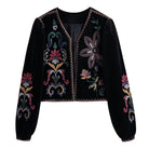 Αυτό το κοντό μπουφάν με λουλουδάτα σχέδια ενσωματώνει μια θηλυκή εμφάνιση γεμάτη γοητεία και χαρακτήρα. Τα πολύχρωμα σχέδια ξεχωρίζουν σε ένα βαθύ μαύρο φόντο, δημιουργώντας μια λεπτή και αρμονική αντίθεση. Ελαφρύ και ευχάριστο στη χρήση, συνδυάζεται εύκολα με διάφορες ενδυμασίες για ένα στυλ ταυτόχρονα μοντέρνο και εκλεπτυσμένο.
