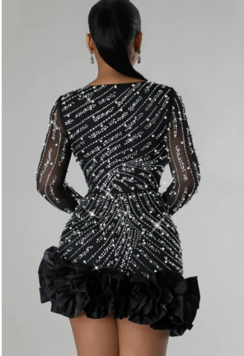 WHY CHOOSE THE FORM-FITTING MINI DRESS WITH CRYSTAL EMBELLISHMENTS?