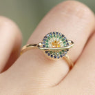 Este anillo elegante ofrece un movimiento rotativo relajante. Su diseño inspirado en la galaxia añade un toque único a tu estilo.