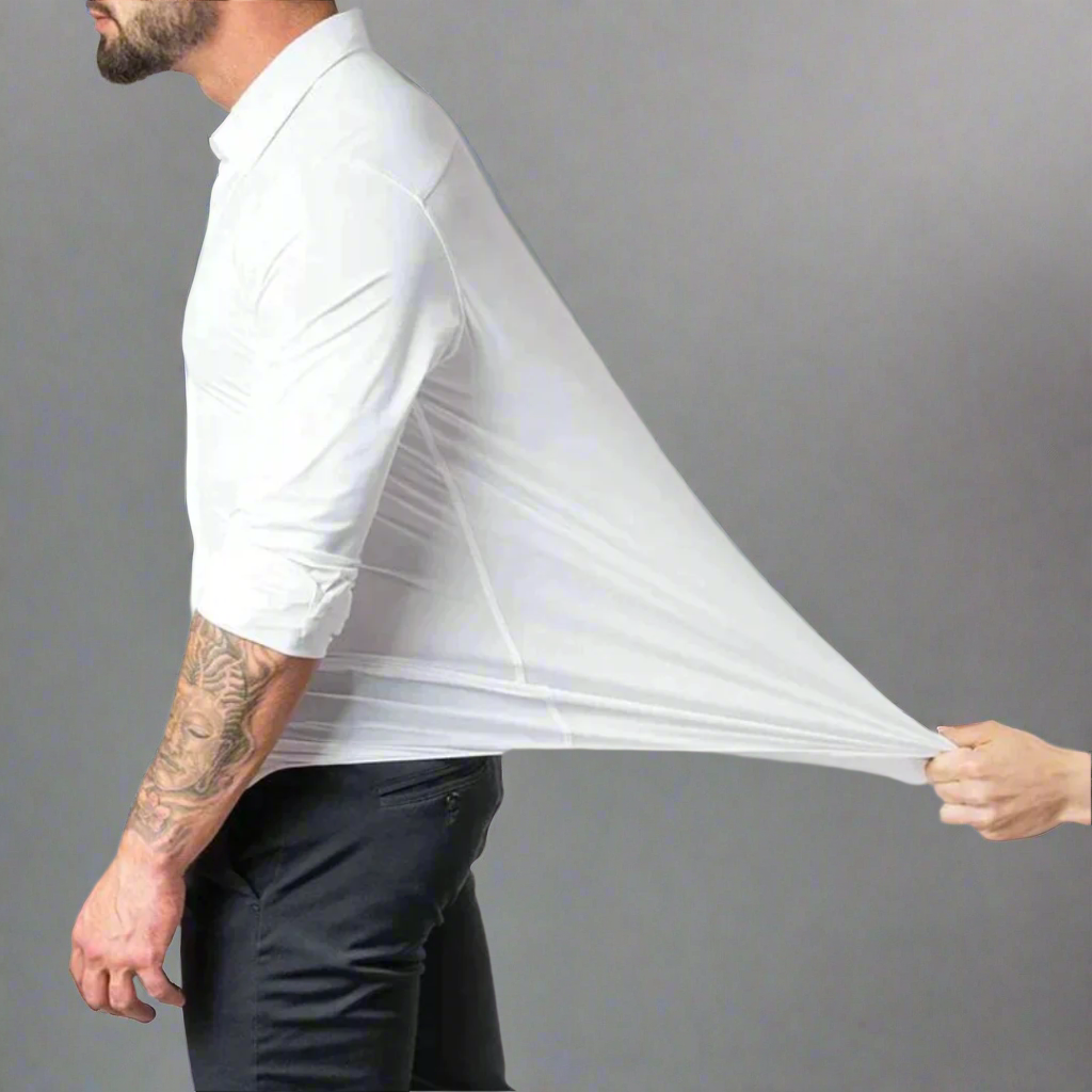 Tämä paita tarjoaa optimaalisen liikkuvuuden joustavan kankaan ansiosta. Sen slim fit -leikkaus takaa elegantin siluetin kaikissa tilaisuuksissa. Helppohoitoinen, se säilyttää moitteettoman ulkonäkönsä pesusta toiseen.