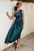 Oriane | Modern leikkauksella varustettu laskostettu iltapuku