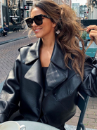 Tämä lyhyt takki tuo modernin kosketuksen kaikkiin asuihisi. Sen leveä kaulus ja jämäkkä leikkaus korostavat siluettia samalla kun tarjoavat täydellistä mukavuutta kevät-kesäkauden aikana. Ihanteellinen valinta tyylikkääseen ja itsevarmaan ilmeeseen aamusta iltaan.