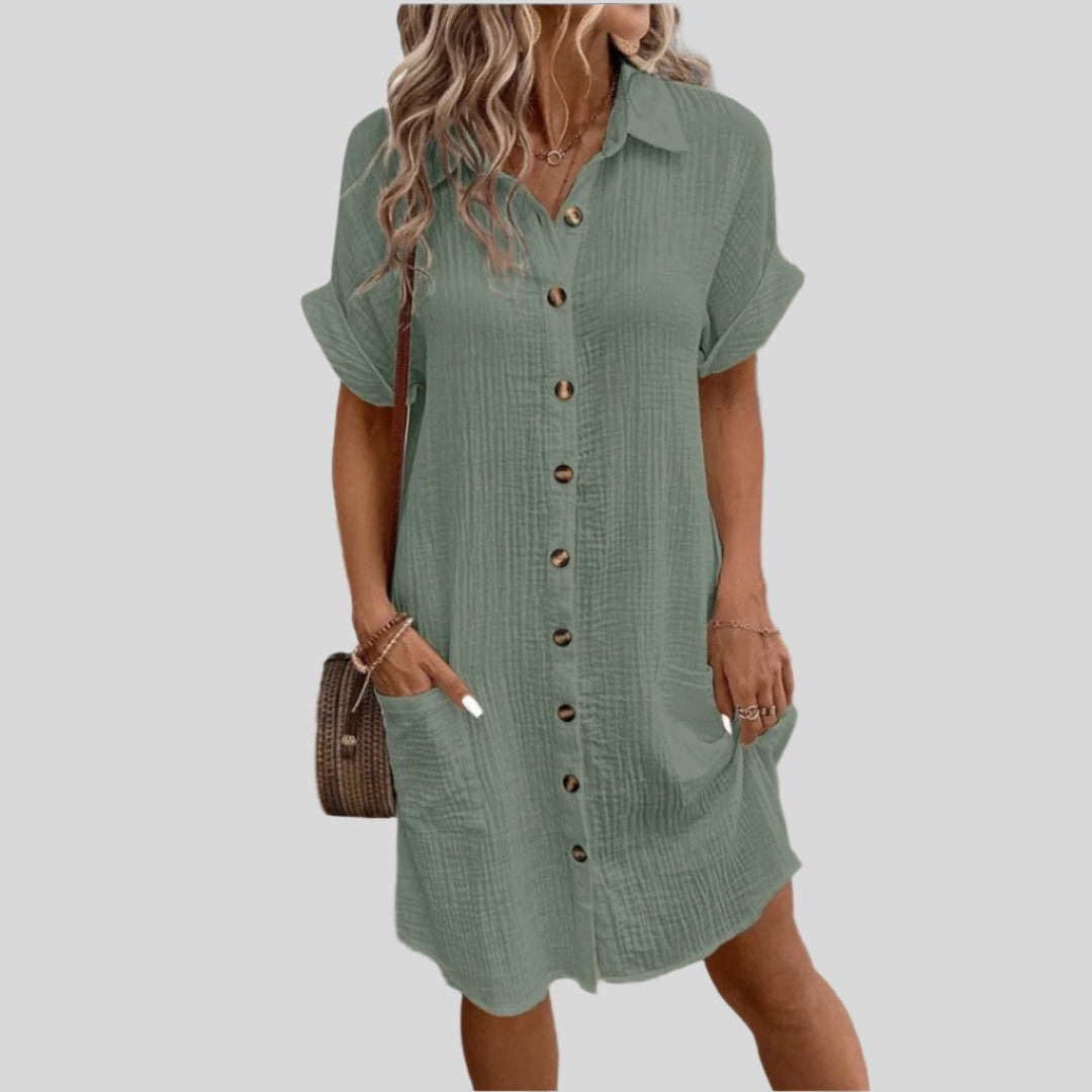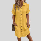 Cette robe chemise boutonnée offre une coupe ample et confortable. Disponible en plusieurs couleurs, elle s'adapte à toutes les occasions. Son design intemporel en fait un incontournable de votre garde-robe.