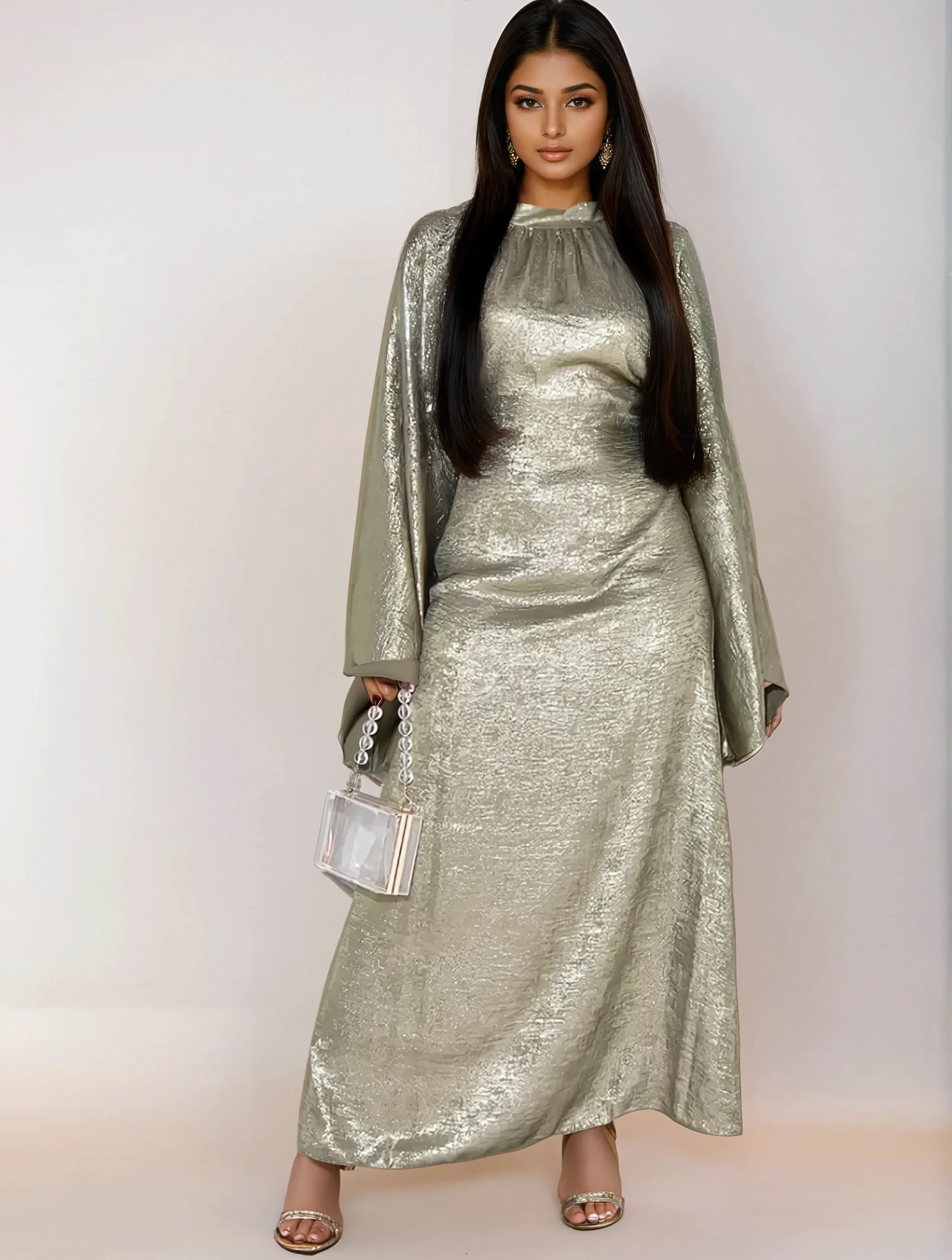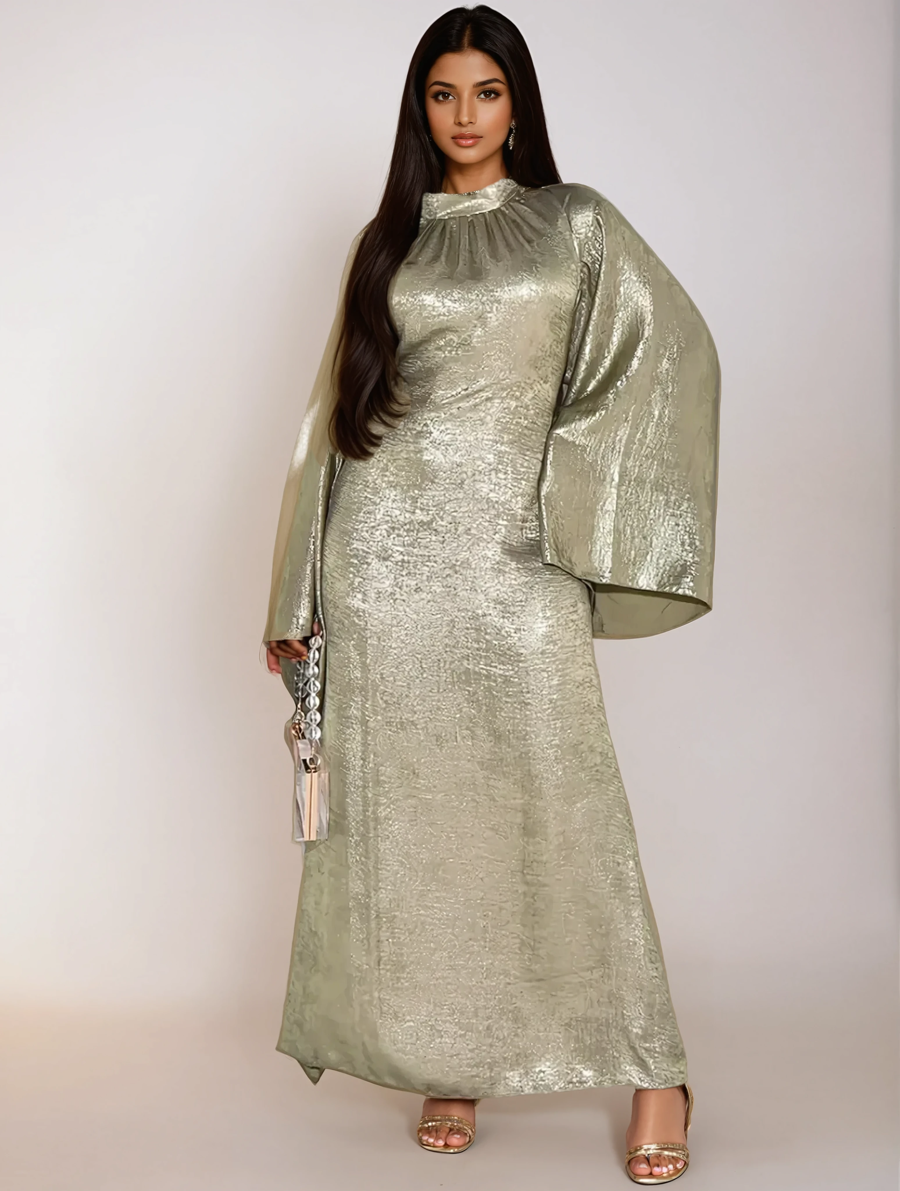 • צווארון גבוה ושרוולים רחבים לאלגנטיות דיסקרטית