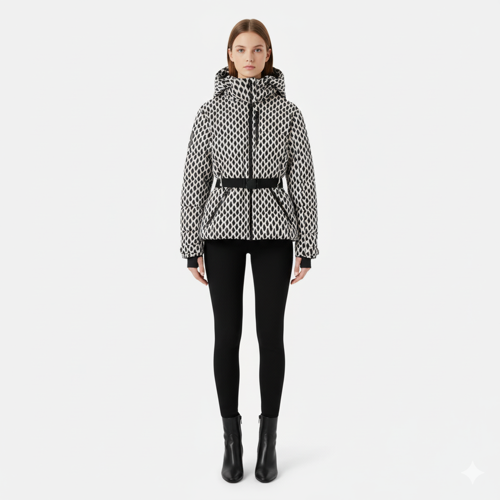 מעיל החורף הזה משלב נוחות עם sophistication בזכות העיצוב הגרפי הייחודי שלו והחתך המותאם. החגורה האלגנטית שלו מדגישה את הסילואטה תוך כדי הבטחת הגנה אופטימלית מפני הקור. דגם שיקי ומודרני, מושלם להתמודד עם עונת החורף בסטייל.