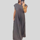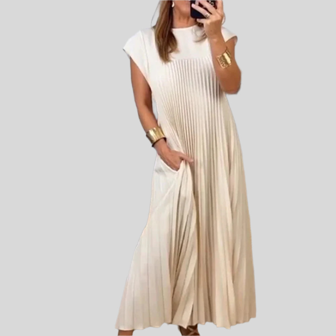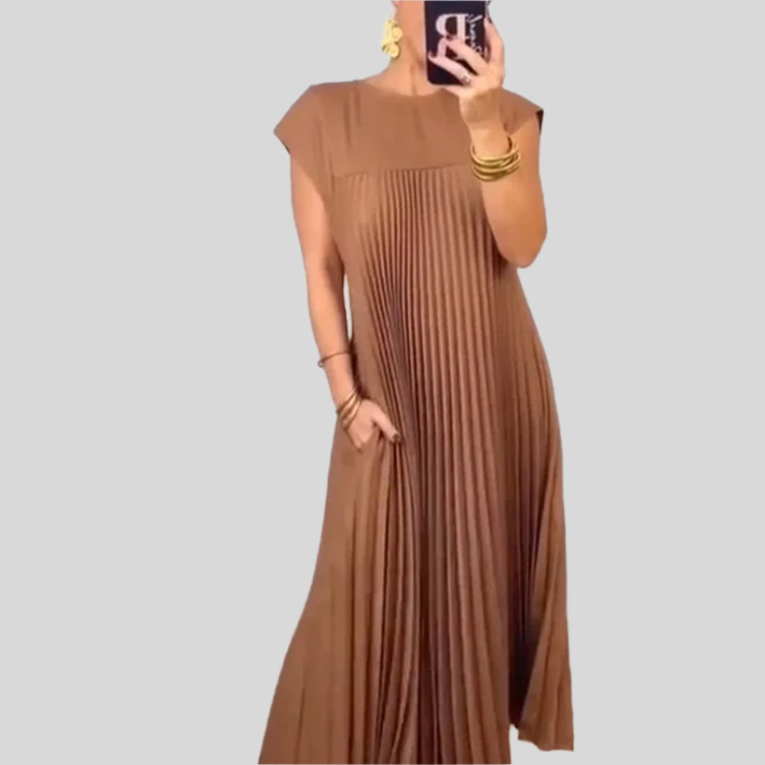 Ez a pliszírozott ruha előnyös sziluettet kínál. Több színben elérhető, minden alkalomhoz illeszkedik. Időtlen dizájnja tartós eleganciát biztosít.