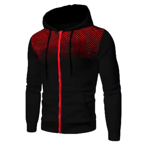 Ez a szett egy cipzáras kapucnis dzsekit és egy jogger nadrágot egyesít, hogy egy könnyen viselhető, összehangolt öltözéket hozzon létre a mindennapokra. A felsőn található degradált minták azonnal feltűnő grafikai elemeket adnak hozzá. Az állítható derékú nadrág lehetővé teszi, hogy a szettet a pihenés és az aktív programok idején is alkalmazkodjon.