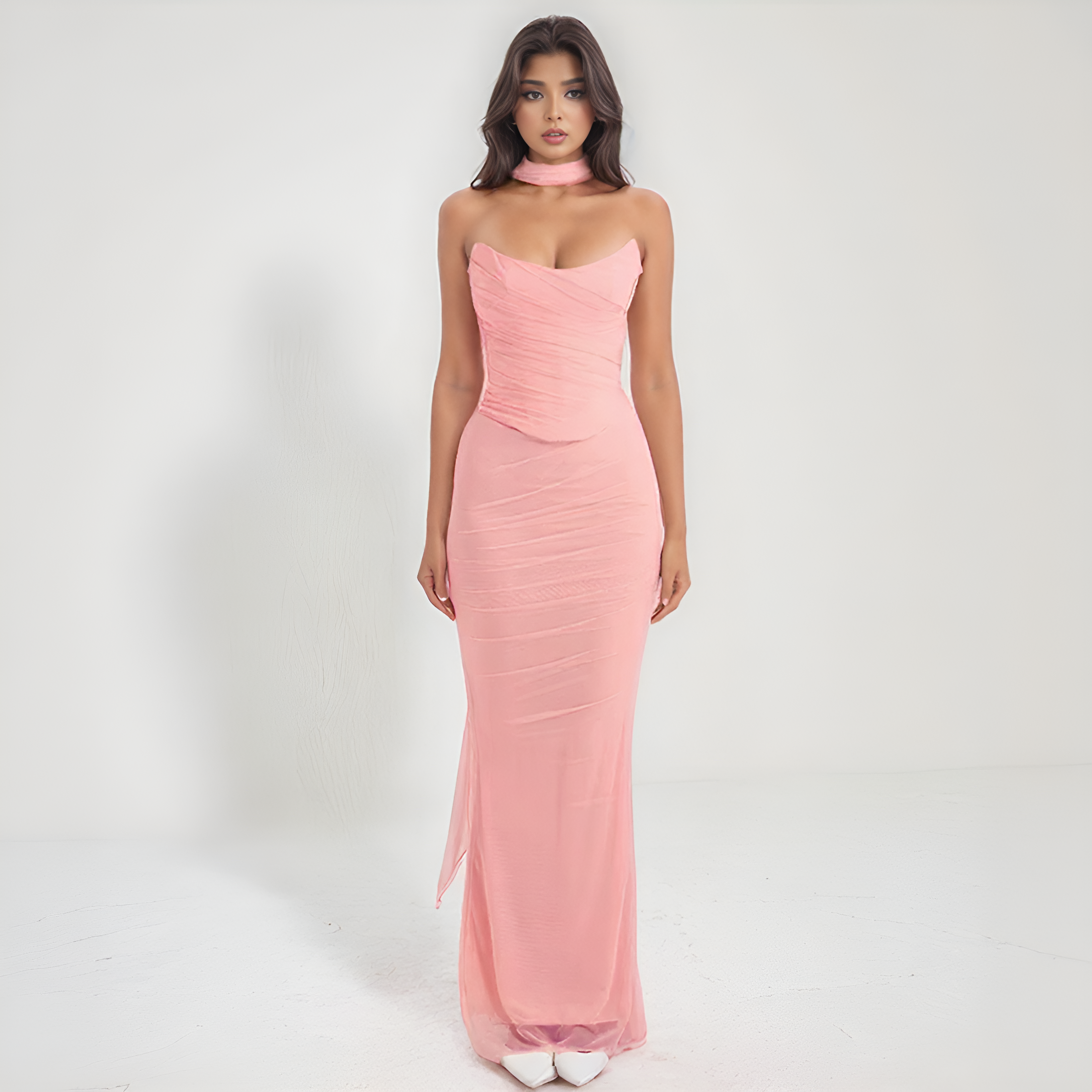 Perry | Lange Jurk Twee Stukken – Elegantie Zonder Bandjes En Gecoördineerde Sjaal